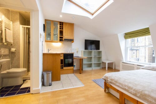 Self-contained accommodation on Claverton Street Pimlico. Our standard studios have everything you need to start your life in London. Get your mornings off to a great start with your own kitchen and en-suite bathroom. You’ll be close to transport links, restaurants, cafes and Central London is just around the corner.