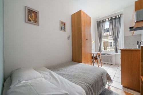 Our large studios on Penywern Road offer spacious, self-contained living. The studios come in either split-level, mezzanine or single-level layouts. Outside your apartment, you can enjoy a landscaped garden to the back of the building. The building is located on a quiet residential street, minutes from Earls Court Station and the high street where you’ll find plenty of shops, restaurants and cafes.