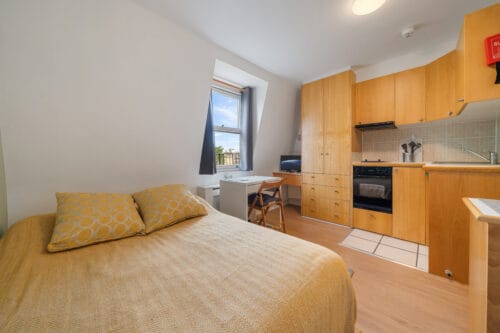 A large studio flat with everything that you need for your new student life. The apartment comes fully furnished, including a study area and double bed, with your own kitchen and en-suite bathroom. You’ll also be able to enjoy a large and newly landscaped shared garden.